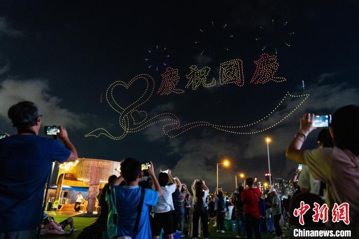 國慶前夕香港夜空無人機表演助興
