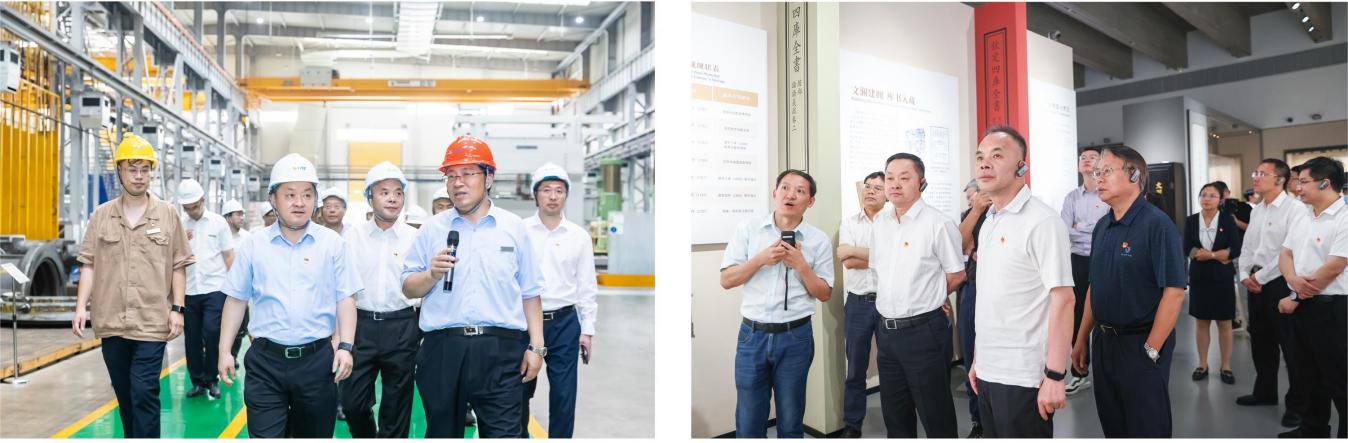 參觀訪問中國國新被投企業(yè)杭州汽輪動(dòng)力集團(tuán)制造基地(左)、赴杭州國家版本館開展主題黨日活動(dòng)(右)