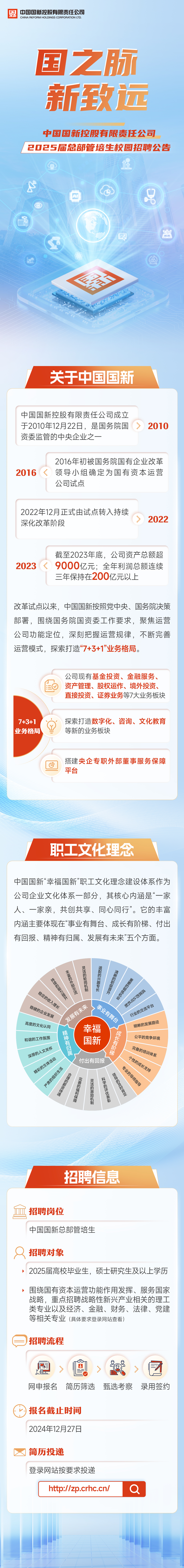 中國國新控股有限責(zé)任公司2025屆總部管培生校園招聘公告