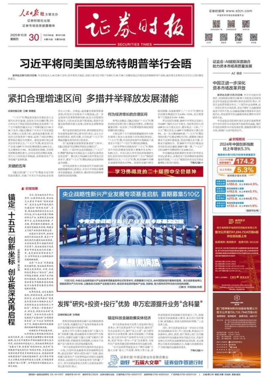 證券時報頭版刊發(fā)《央企戰(zhàn)略性新興產(chǎn)業(yè)發(fā)展專項基金啟航 首期募集510億》圖片新聞