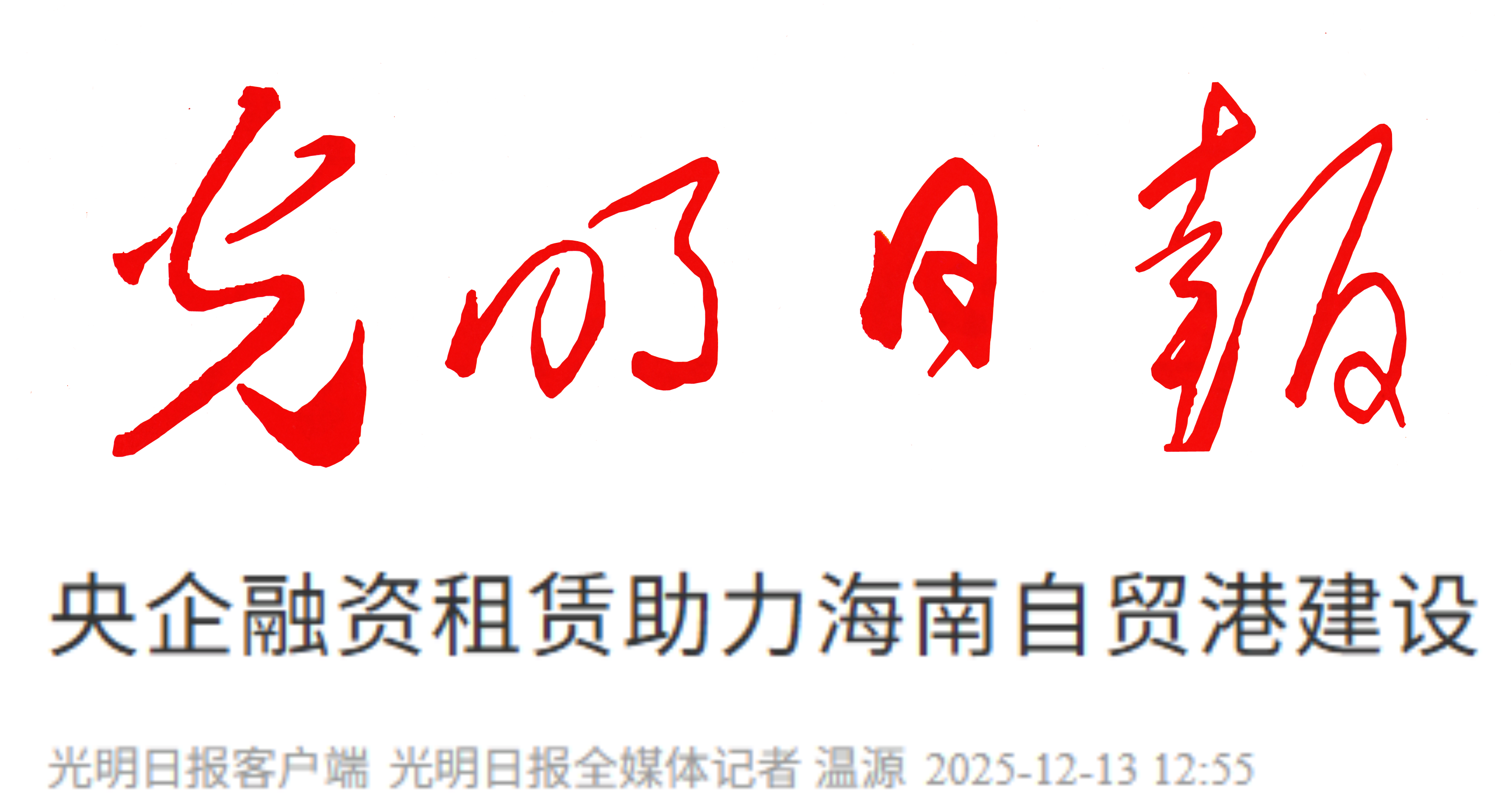 今天,推出系列報(bào)道第2期:光明日?qǐng)?bào)推出的《央企融資租賃助力海南自貿(mào)港建設(shè)》。