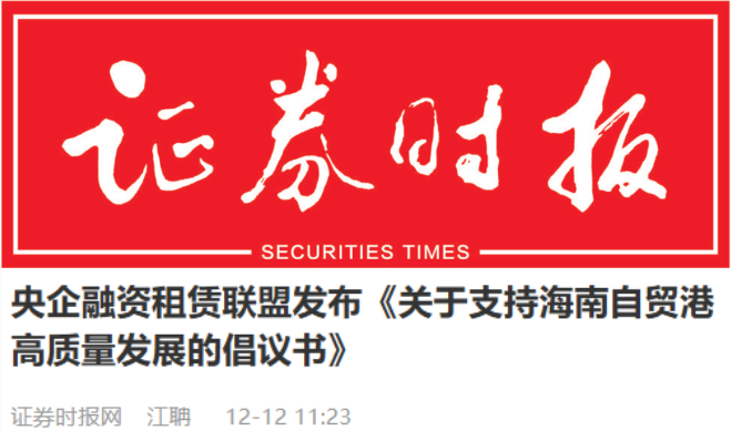 今天,推出系列報道第6期:證券時報推出的《央企融資租賃聯(lián)盟發(fā)布<關于支持海南自貿(mào)港高質(zhì)量發(fā)展的倡議書>》。