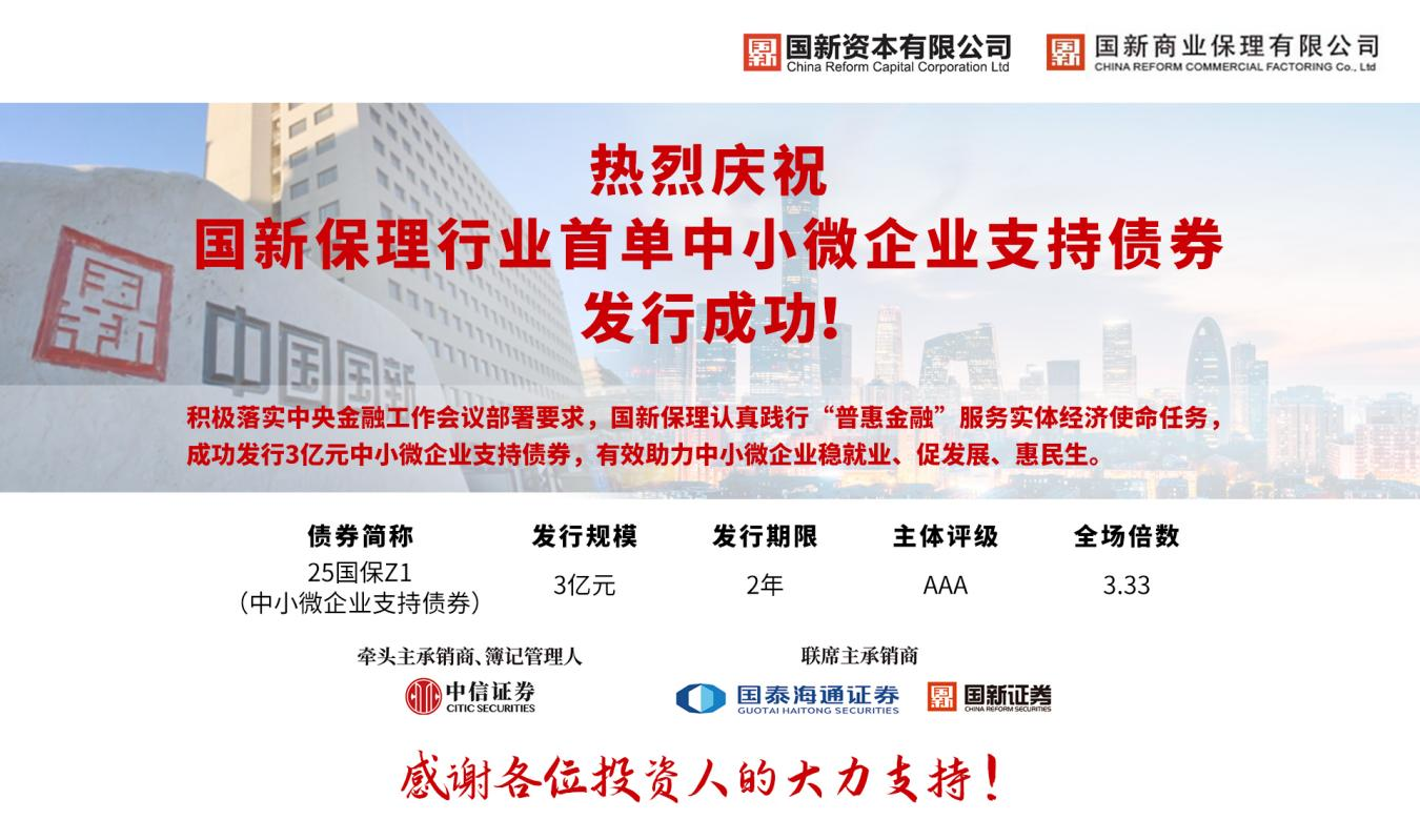 8月26日,國新保理發(fā)行的商業(yè)保理行業(yè)首單中小微企業(yè)支持債券正式上市,發(fā)行規(guī)模3億元,全場認(rèn)購倍數(shù)達(dá)3.33倍,票面利率再創(chuàng)行業(yè)新低。
