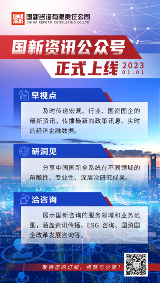 2022年下半年,中國(guó)國(guó)新匯聚全系統(tǒng)研究資源、組建專業(yè)咨詢隊(duì)伍,成立國(guó)新咨詢,旨在打造對(duì)內(nèi)的成果共享中心和決策支撐中心,對(duì)外的咨詢業(yè)務(wù)中心和觀點(diǎn)傳播中心。此次推出的“國(guó)新資訊”研究品牌,秉承中國(guó)國(guó)新“國(guó)之脈、傳承責(zé)任之脈,新致遠(yuǎn)、堅(jiān)持創(chuàng)新發(fā)展”的核心價(jià)值理念,聚焦國(guó)有經(jīng)濟(jì)、中央企業(yè)、國(guó)有資本運(yùn)營(yíng)等戰(zhàn)略問(wèn)題,向關(guān)心支持國(guó)有資本運(yùn)營(yíng)事業(yè)的各界朋友分享研究成果,共同探討如何在落實(shí)新發(fā)展理念、推進(jìn)中國(guó)式現(xiàn)代化的過(guò)程中更好發(fā)揮運(yùn)營(yíng)公司功能作用,助力國(guó)資央企高質(zhì)量發(fā)展、推動(dòng)國(guó)有資本做強(qiáng)做優(yōu)做大。