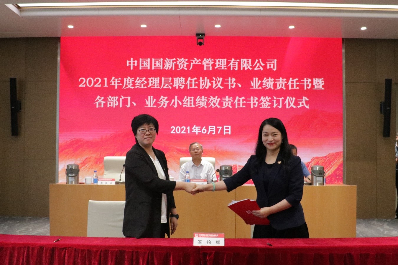 中國(guó)國(guó)新資管事業(yè)部總經(jīng)理、國(guó)新資產(chǎn)總經(jīng)理李鐵南與國(guó)新資產(chǎn)副職負(fù)責(zé)人簽訂了2021年度聘任協(xié)議書(shū)和經(jīng)營(yíng)業(yè)績(jī)責(zé)任書(shū),并與各部門(mén)、業(yè)務(wù)小組簽訂了2021年經(jīng)營(yíng)業(yè)績(jī)責(zé)任書(shū)。會(huì)議還傳達(dá)了中國(guó)國(guó)新國(guó)企改革三年行動(dòng)經(jīng)理層成員任期制和契約化管理專(zhuān)題推進(jìn)會(huì)暨2021年度聘任協(xié)議書(shū)、業(yè)績(jī)責(zé)任書(shū)簽訂會(huì)會(huì)議精神。