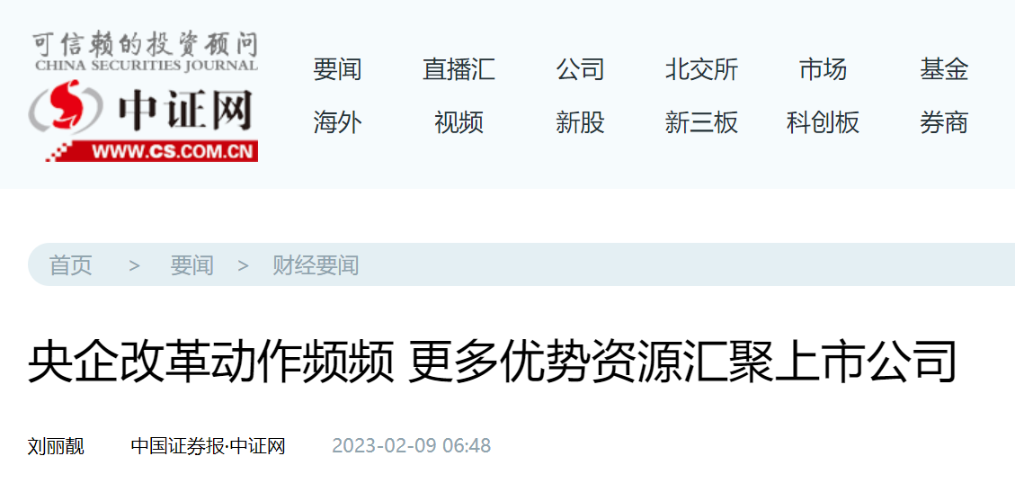 近日,中國證券報(bào)關(guān)注新一輪央企改革,刊載《央企改革動作頻頻 更多優(yōu)勢資源匯聚上市公司》一文,報(bào)道中國國新提出2023年發(fā)展新目標(biāo),努力打造形成規(guī)模大、專業(yè)強(qiáng)、分量重、形象優(yōu)、更加成熟定型的國有資本市場化運(yùn)作平臺。現(xiàn)將全文分享如下: